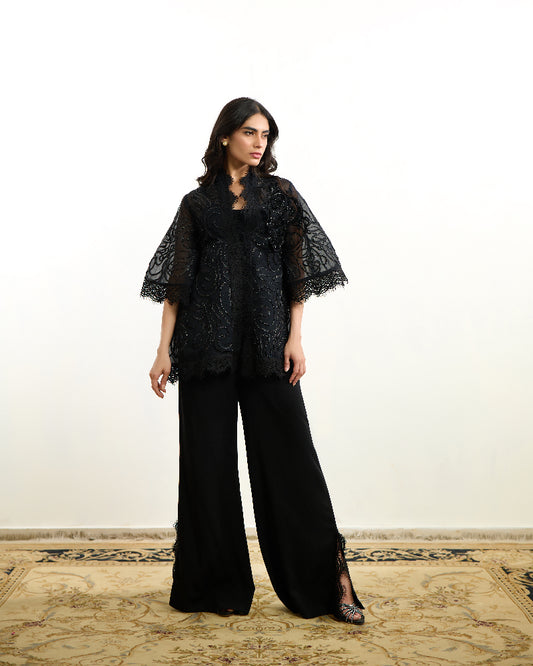 AREEJ-NOIR is a timeless embodiment of modern sophistication, crafted in classic black. This layered chiffon...