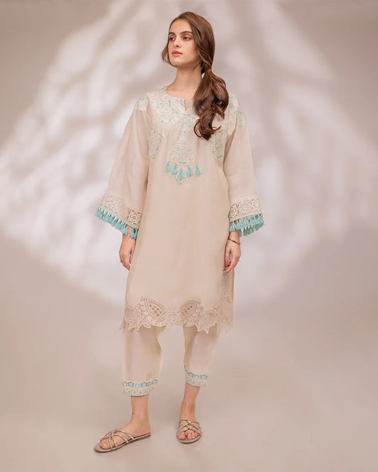 Fabric: Pure voil lawn Cut: Box kurta Color: Ivory Detailing: Embroideries & cutwork Dupatta: Embroidered...