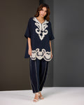 A bold expression of color and craftsmanship, Daisy Delight in navy blue is where modern silhouettes meet traditional artistry. Crafted in luxe Irish fabric, this two-piece ensemble brings vibrant sophistication to your festive wardrobe.