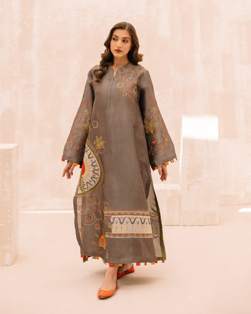 Detailing: Playful and edgy embroideries featuring vibrant neon appliqués and delicate stitch details for a bold, contemporary twist.