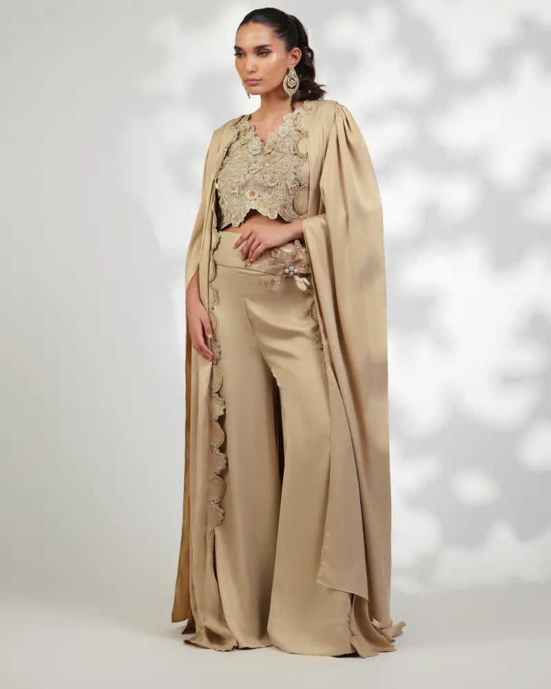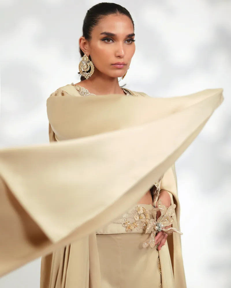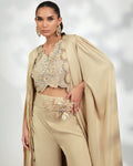 Detailings: Crystals & Swarovski Cladded Cape paired with an Intricately Embroidered and Embellished Crop Top