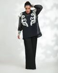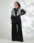 - Black flare pleated pants