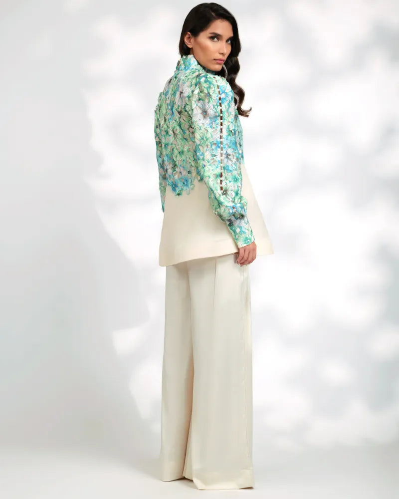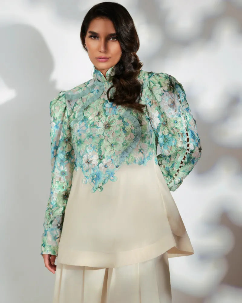Cut: Short Flare with Plaid Puff Sleeves & Zipped Cuff