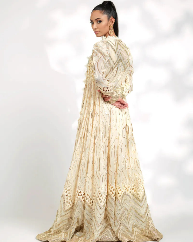 Cut: Floor Length Flare Jacket Worn with a Lehenga Choli