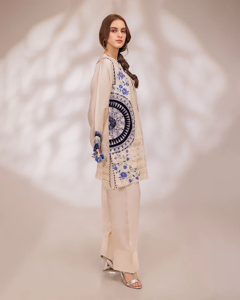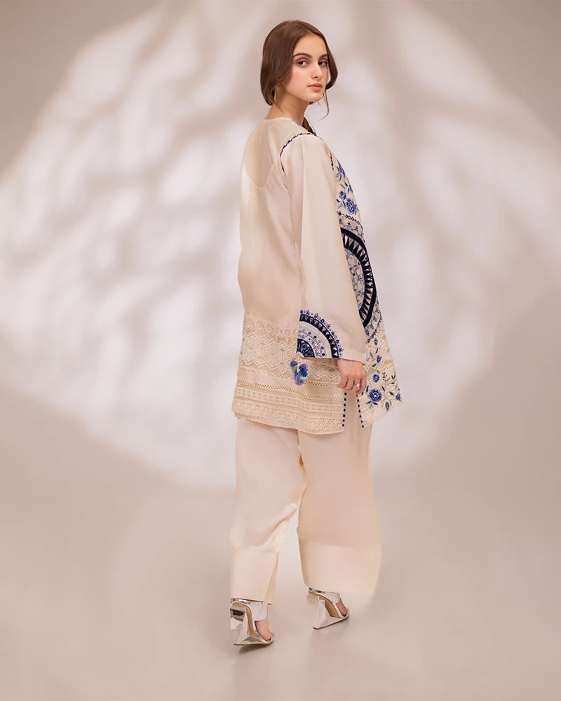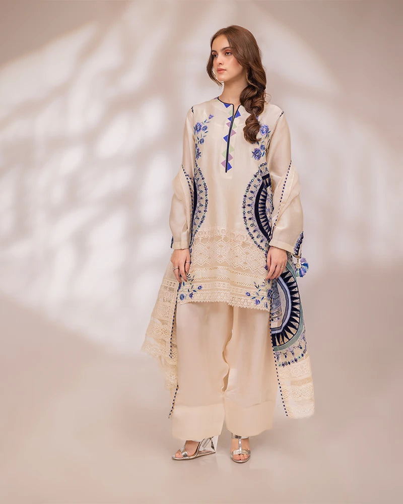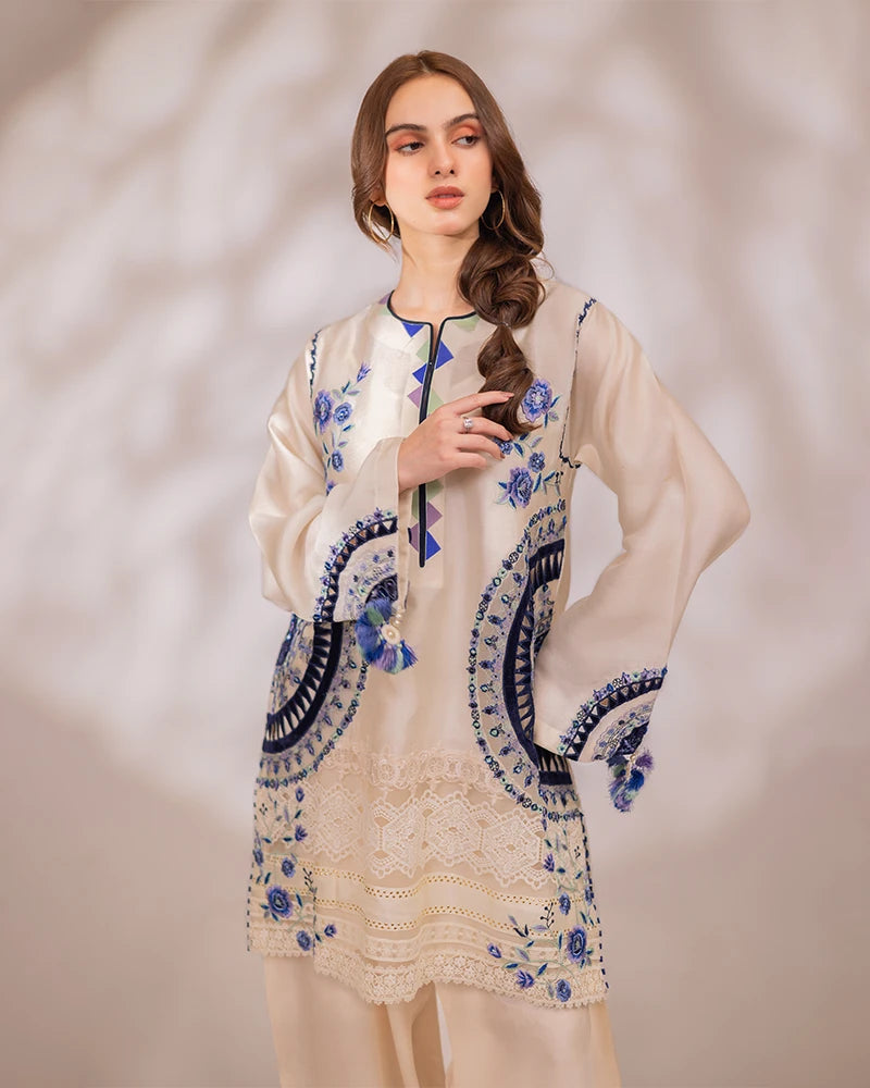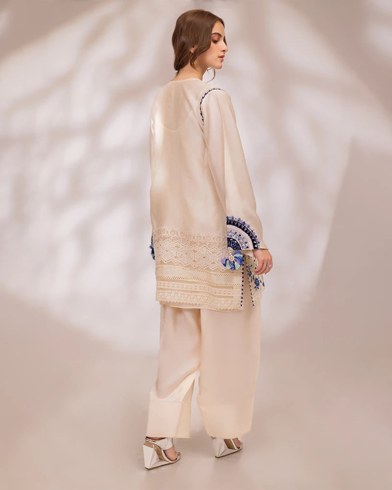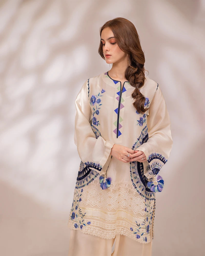 Detailing: Cutwork laces & embroidered hemline enhanced with multi silk thread embroideries and cutwork all over