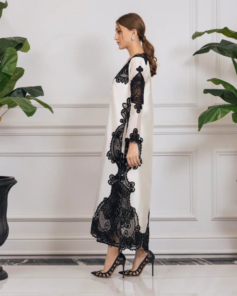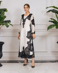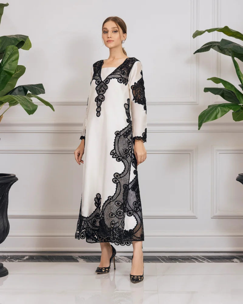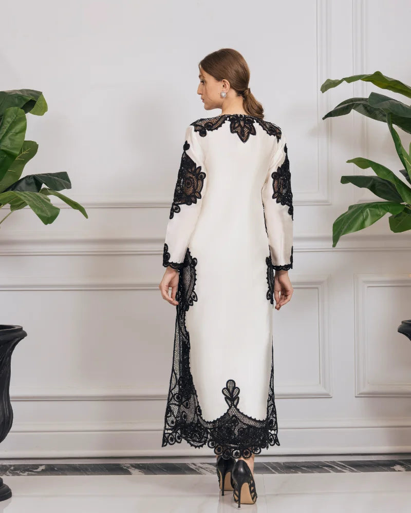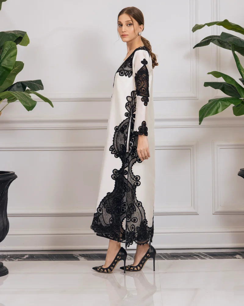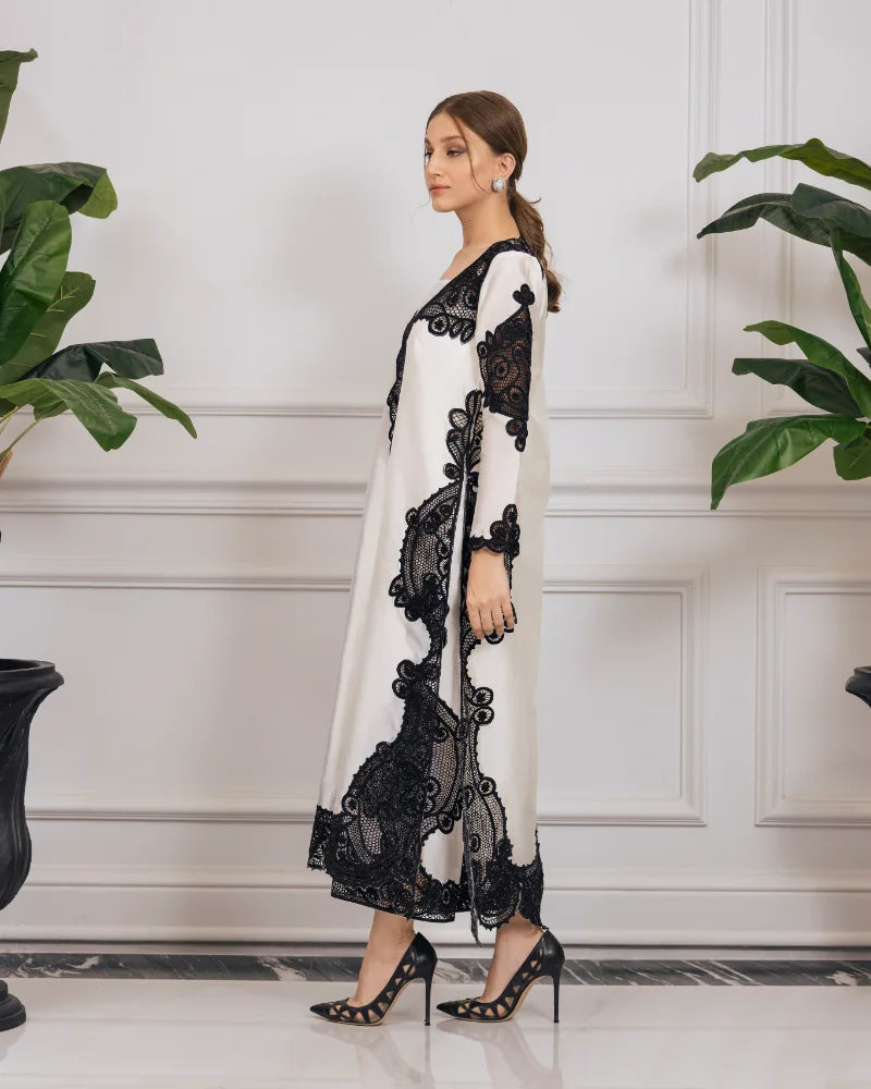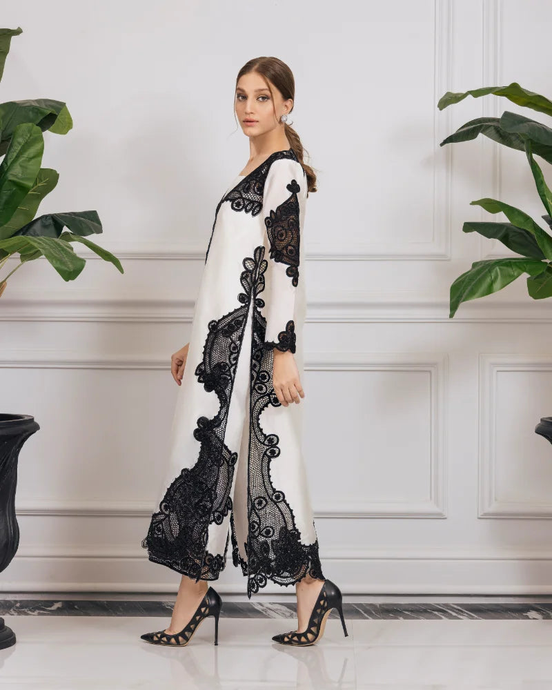 The mesmerizing outfit is crafted with precision laser cutwork and an undeniably elegant style. This ensemble showcases intricate patterns, flawlessly etched onto the fabric, creating a captivating and modern aesthetic.