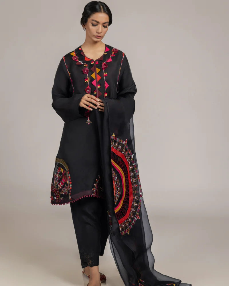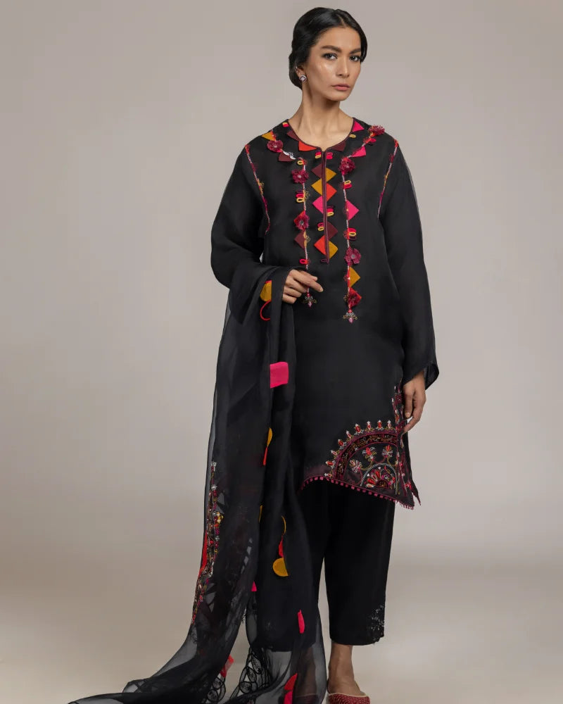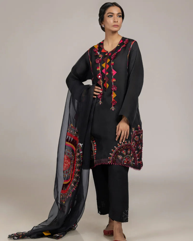 Color: Black base with multi embroidery