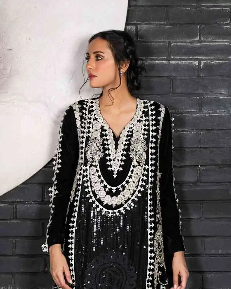 Aurum Noir is the latest designer catalog by AleenaFareena. Aurum Noir is Latin for black and gold, a beautiful combination which symbolizes timeless royalty. A result of months of preparation, we introduce our latest design of ethnic wear for women. Make a statement with every suit we have. Be bold.