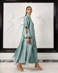 Asymmetric jacket with cutwork embroidered borders defining the lengths. Drape this beautiful jacket done in pure self patterned silk to exude grace and style. The jacket comes with a short (knee length) slip.