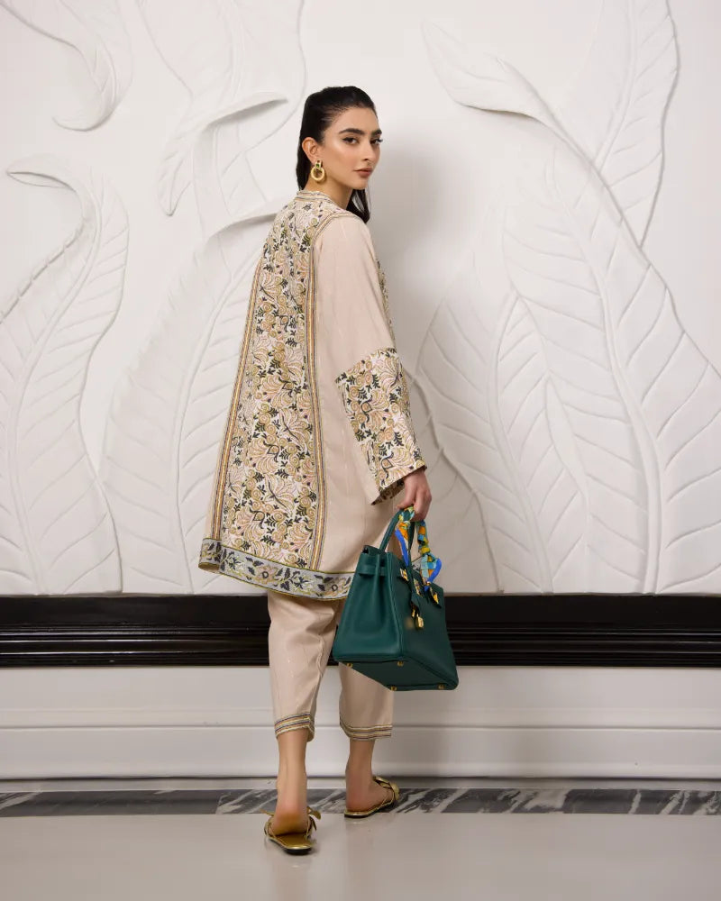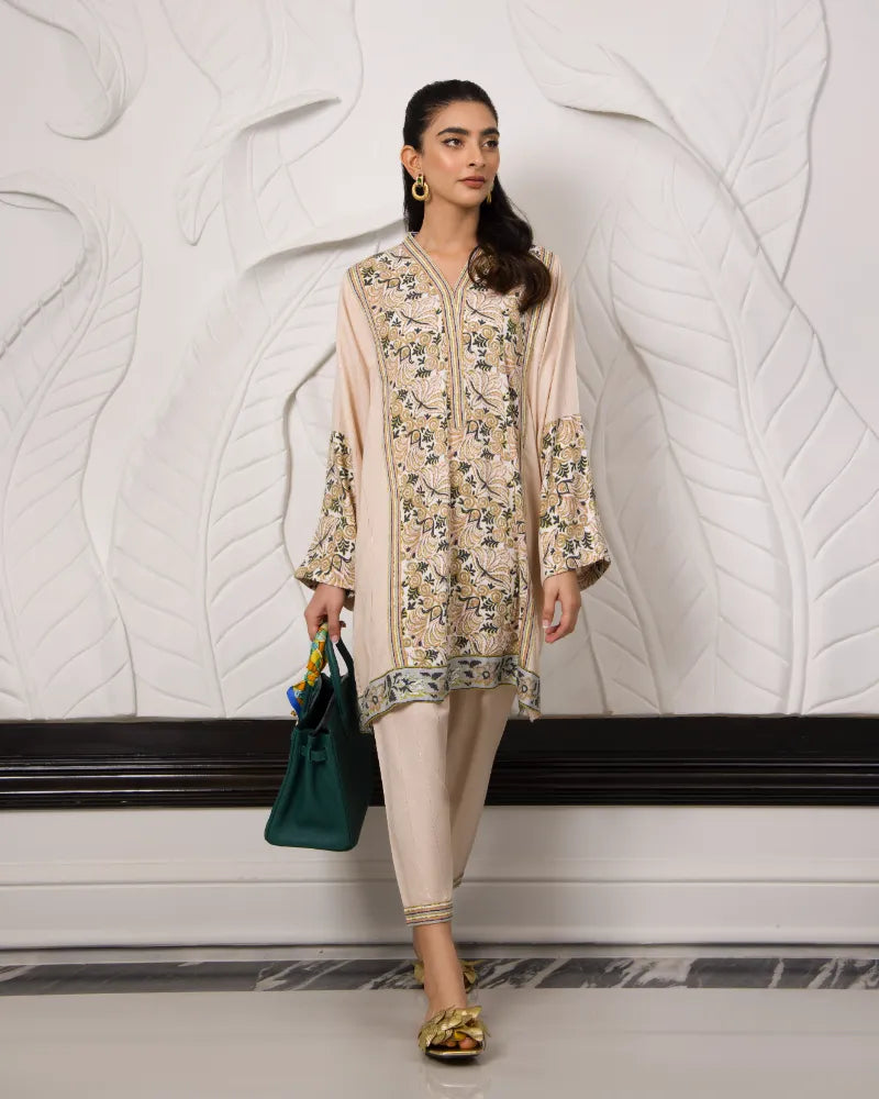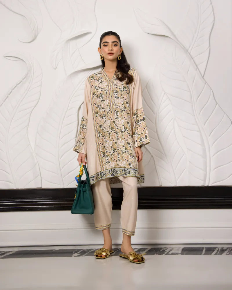 Indulge in the irresistible charm of pastel colors with our must-have ensemble. Meticulously crafted from fine lightweight fabric, this set boasts a loose-fitting kameez, shalwar, capturing the essence of timeless style.