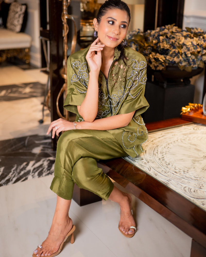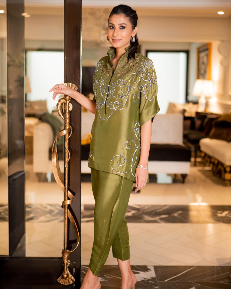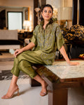 Elevate your wardrobe with the Scarlet Sage ensemble—an effortlessly chic and refreshing sage green two-piece set, expertly crafted from breathable cotton seesha fabric.