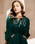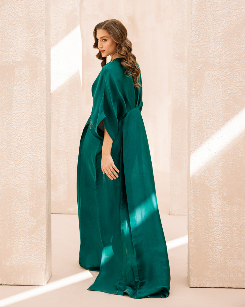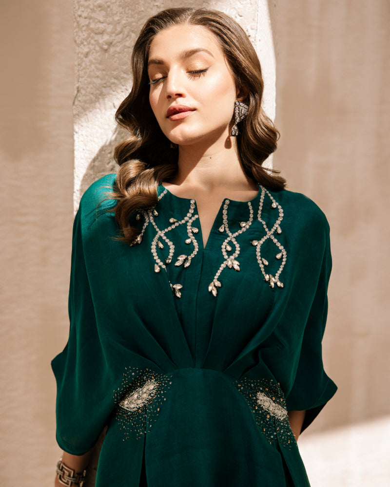 Detailing: Artful stitching enhanced with Swarovski crystals, creating a luminous statement