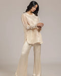 Pant: Nude peach satin bootleg