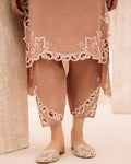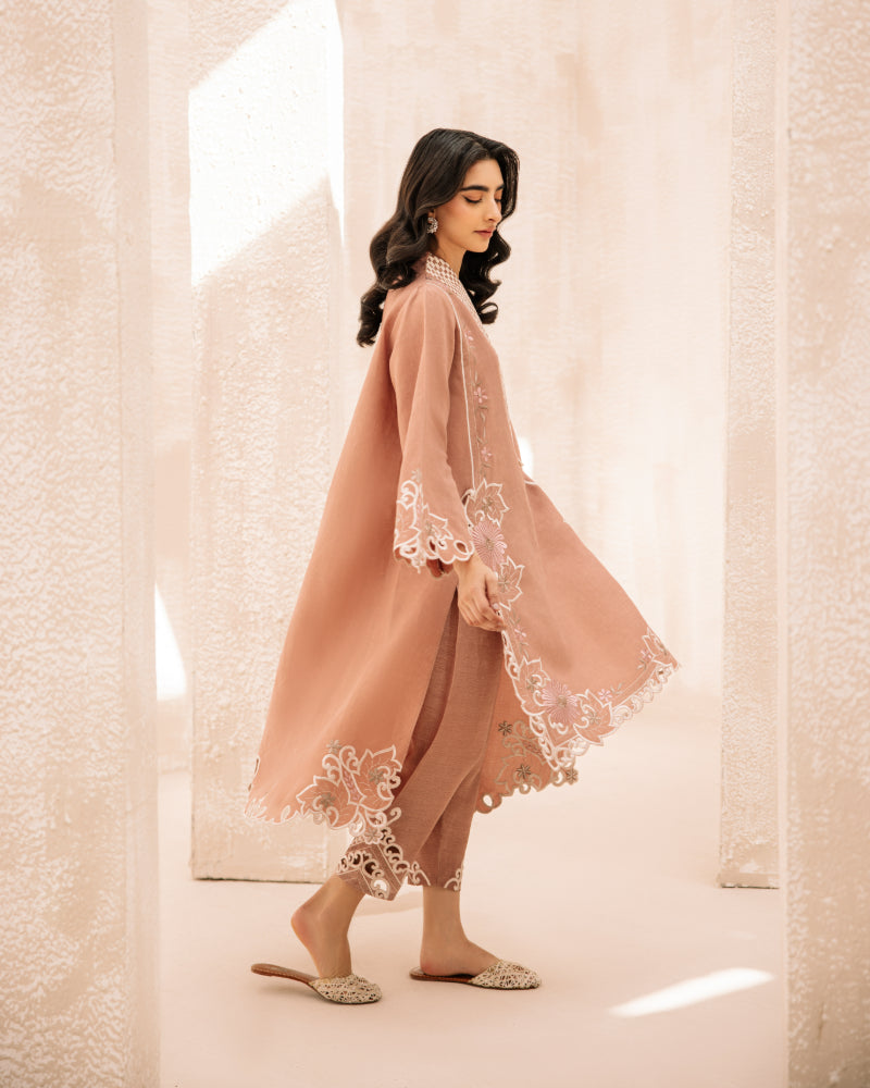 Add-ons: Textured Khaddi net dupatta with cutwork embroidery on the corners – 9500 (WhatsApp for pictures).