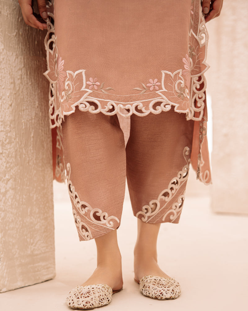 Cut: A modern loose-fit, boxy kurta with front slits and an asymmetric hemline for effortless elegance and fluid movement.
