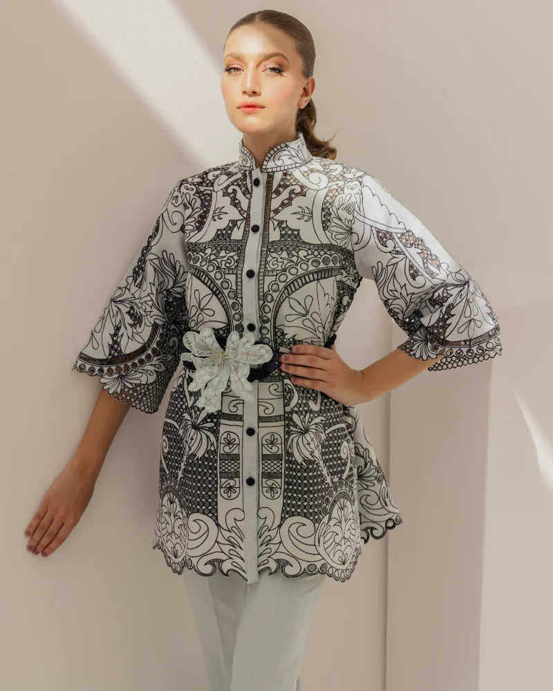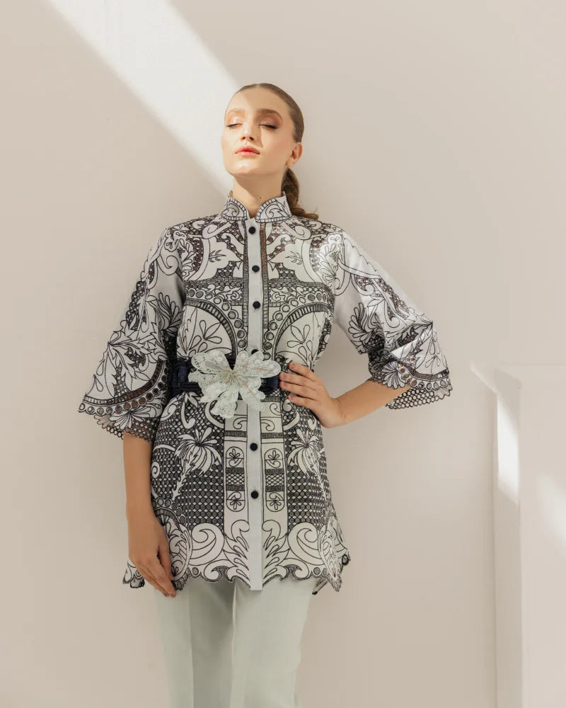 Detailing : The shirt is embedded with heavy cutwork embroidery on front back and sleeves